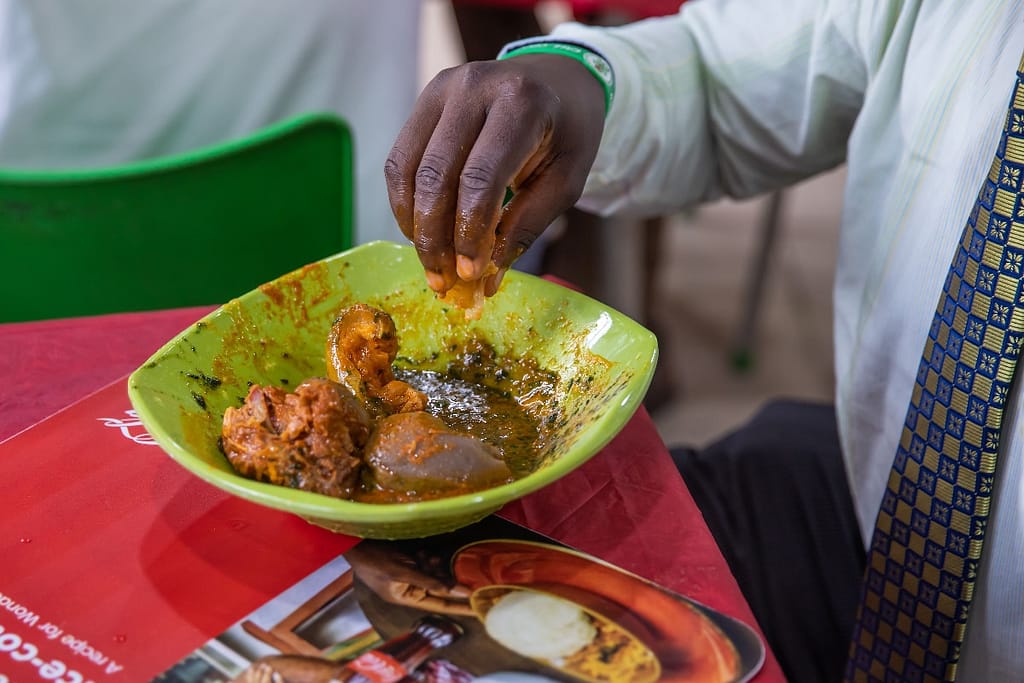 slightly slippery Ewedu, all blending with the peppery heat of the stew. The experience is